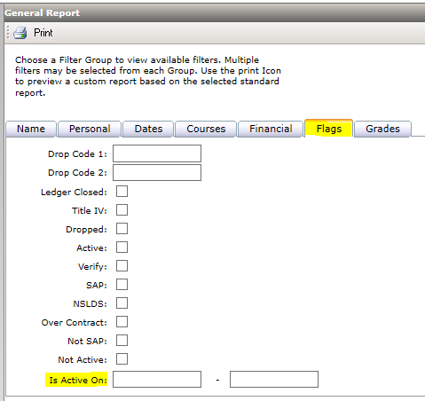 | 2. | Run a query on the Student General Report using Is Active On: [1year prior to visit date] - [day you are running report] | |