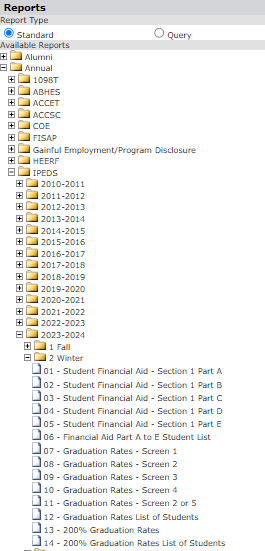 Location:Reports (Standard) > Annual > IPEDS > 2022-2023 > Winter