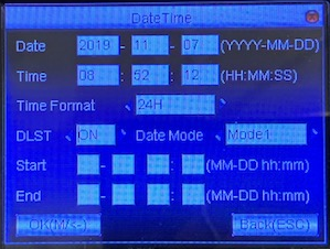 | 2. | Find where it says DLST and switch from "OFF" to "ON" (Top image is with DST OFF / Bottom Image is with DST ON) | |