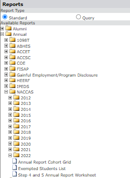 NACCAS – Annual Report Cohort Grid