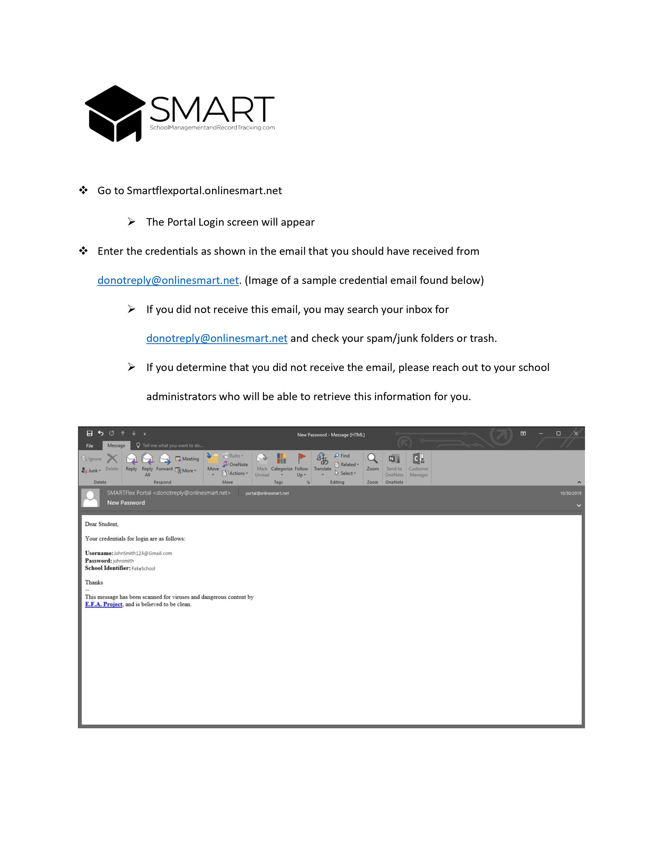 SMARTFlex (Student Portal) Student Instruction Sheet