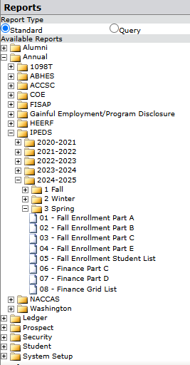 OnlineSMART generates data for the following sections required in Spring IPEDS: