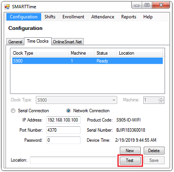Testing SMARTTimeIt’s important to take this step after the official change in time. It’s also optimal to do this before students next clock in, to avoid needing manual punch corrections.- In SMARTTime go to Configuration and select the Time Clocks tab