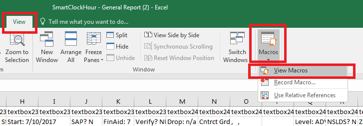 | 5. On your report CSV file go to View > Macros > View Macros | |