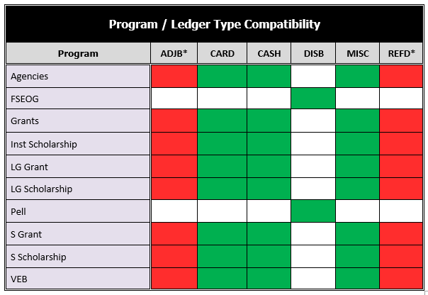 - See Table 1.1 for the complete list of Programs and which ledger Types they require for 1098-T inclusion.